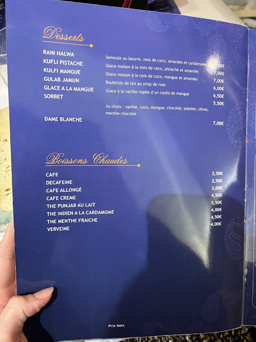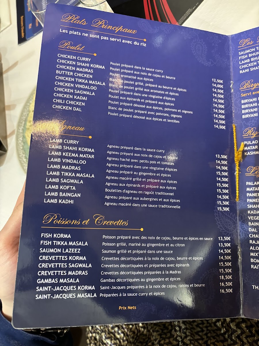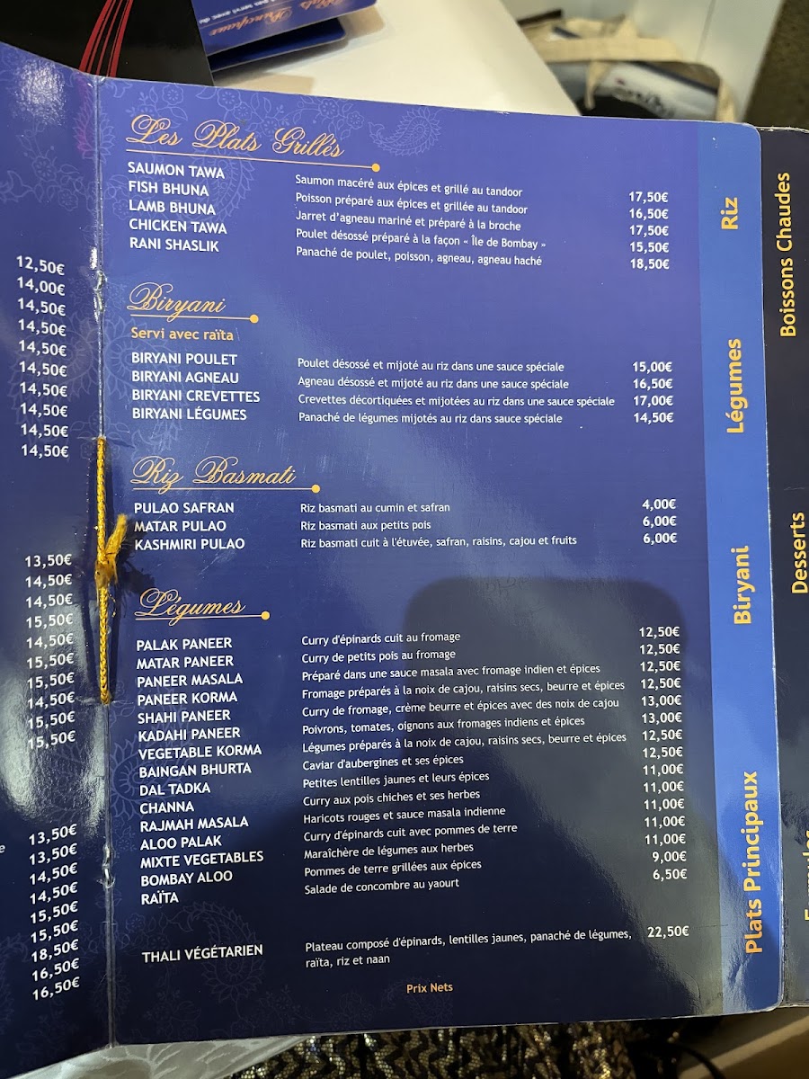 The menu at this Indian and South Asian restaurant in Paris offers a diverse selection of traditional dishes and popular drinks, reflecting authentic regional flavors. Guests can expect a variety of savory options including vegetarian and meat-based main courses such as korma, tandoori chicken, and biryani. Complementary breads like cheese naan and accompaniments including raita and spinach are also available, providing balanced meal choices.